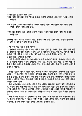 %uc18c%uc124 %uc54c%uc544%ubcf4%uae30- 15%ubd84-134] %uc911%uc694%uc778%ubb3c %uc0c1%ud638%uac04%uc758 %uad00%uacc4 %uc694%uc57d%uae30%uc0ac%uc640 %ubc00%ub7ec: %uae30%uc0ac%ub3c4%uc640 %ud604%uc2e4, %uba85%uc608%uc640 %uc695%ub9dd%uc758 %ub300%uc870%uc801 %uc131%uaca9%uc73c%ub85c, %uc11c%ub85c %ub2e4%ub978 %uac00%uce58%uc640 %uc2dc%uac01%uc744 %ubcf4%uc5ec%uc900%ub2e4.%ubc14%uc2a4 %ubd80%uc778%uacfc %uc218%ub3c4%uc790/%uc18c%ud658%uc0ac/%ubcc0%ud638%uc0ac: %uc5ec%uc131%uc758 %ub3c5%ub9bd%uc131, %uc2e0%uc559%u00b7%ub3c4%ub355%u00b7%ubc95%ub960%uc801 %uad8c%uc704 %ub4f1%uc5d0 %uad00%ud55c %ub17c%uc7c1%uacfc %ud48d%uc790%uac00 %uc5ec%ub7ec %ucc28%ub840 %ub4f1%uc7a5.%uc5ec%uad00%uc8fc%uc778%uacfc %uc21c%ub840%uc790 %uc804%uccb4: %uc990%uac81%uace0 %uacf5%uc815%ud55c %uc5ec%ud589%uc744 %uc774%ub04c%uae30 %uc704%ud574 %uc911%uc7ac%uc790 %uc5ed%ud560, %uac01 %uc778%ubb3c%uc758 %uac1c%uc131%uc744 %uc720%ub3c4.%uc21c%ub840%uc790%ub4e4 %uc0ac%uc774: %uac01%uc790%uc758 %uc774%uc57c%uae30%uc640 %uc9c1%uc5c5, %uc131%uaca9%uc5d0 %ub530%ub77c %uc6b0%uc815, %uac08%ub4f1, %ub18d%ub2f4, %uacbd%uc7c1%uc774 %ud3bc%uccd0%uc9c0%uba70, %uc9d1%ub2e8 %ub0b4 %uc2ec%ub9ac%uc801%u00b7%uc0ac%ud68c%uc801 %uc5ed%ub3d9%uc131%uc744 %ud615%uc131.5] %uc774 %ucc45%uc5d0 %ub300%ud55c %ud2b9%uc9d5%uacfc %uc228%uc740 %uc774%uc57c%uae30 %u300a%uce94%ud130%ubca0%ub9ac %uc774%uc57c%uae30%u300b%ub294 %uc601%uc5b4%ub85c %uc4f0%uc778 %ucd5c%ucd08%uc758 %ubb38%ud559 %uac78%uc791 %uc911 %ud558%ub098%ub85c, %uc911%uc138 %uc601%uad6d %uc804%uccb4 %uacc4%uce35%uc744 %uc720%ucf8c%ud558%uac8c %uc9d1%ub300%uc131%ud55c %ub3c5%ubcf4%uc801 %uc11c%uc0ac%ub2e4. %ucd08%uc11c%ub294 %ub77c%ud2f4%uc5b4%ub098 %ud504%ub791%uc2a4%uc5b4%uac00 %uc544%ub2cc %uc601%uc5b4%ub85c %uc791%ud488%uc744 %uc644%uc131%ud574, %uc601%uad6d %ubbfc%uc911%uc758 %uc5b8%uc5b4%uc640 %ud604%uc2e4%uc5d0 %ubc00%ucc29%ud558%uba70 %ub2f9%uc2dc %uc0ac%ud68c%uc758 %ud3ed%ub113%uc740 %uc77c%uc0c1%uacfc %uc778%uac04 %uad70%uc0c1(%u7fa4%u50cf)%uc744 %uadf9%uba85%ud558%uac8c %uadf8%ub824%ub0c8%ub2e4.%uac00%uc7a5 %ud070 %ud2b9%uc9d5%uc740 %uc774%uc57c%uae30 %uc18d %uc774%uc57c%uae30%ub77c%ub294 '%ud504%ub808%uc784 %ub0b4%ub7ec%ud2f0%ube0c' %uad6c%uc870%ub85c, %uc21c%ub840%ub77c%ub294 %uc9d1%ub2e8%uc801 %uacbd%ud5d8%uc5d0 %uac01 %uc778%ubb3c%uc758 %uac1c%ubcc4%uc801 %uc11c%uc0ac%uac00 %uacb9%uccd0%uc9c4%ub2e4. %uae30%uc0ac, %ub18d%ubbfc, %uc218%ub3c4%uc0ac, %uc0c1%uc778, %uc5ec%uc131 %ub4f1 %uac01%uae30 %ub2e4%ub978 %uacc4%uce35%uc758 %uc778%ubb3c%uc774 %uc790%uae30%ub9cc%uc758 %ubaa9%uc18c%ub9ac%ub85c %uc2dc%ub300%uc758 %ud48d%uc790, %ub3c4%ub355, %uc720%uba38, %uc0ac%ub791, %uc885%uad50 %ub4f1 %ub2e4%uce35%uc801 %uc0ac%ud68c%uc0c1%uc744 %uc0dd%uc0dd%ud558%uac8c %ud3bc%uce5c%ub2e4.%ucd08%uc11c%ub294 %uc778%ubb3c%uc758 %uc5b8%uc5b4%uc640 %uc2b5%uad00, %uc2ec%ub9ac, %uc0ac%ud68c%uc801 %uc9c0%uc704%uae4c%uc9c0 %ub514%ud14c%uc77c%ud558%uac8c %ud3ec%ucc29%ud558%uc5ec %ubaa8%ub4e0 %uc778%ubb3c%uc774 %uc2e4%uc7ac%ud558%ub294 %ub4ef %ubb18%uc0ac%ud588%ub2e4. %uac01 %uc774%uc57c%uae30%uc5d4 %uc74c%ud0d5%ud568%uacfc %ud574%ud559, %ub3c4%ub355%uc801 %uad50%ud6c8, %uc778%uac04 %ub0b4%uba74%uc758 %uac08%ub4f1, %uacc4%uce35%uc801 %ubd88%ud569%ub9ac%uc131, %uc885%uad50%uc801 %uc5f4%uc815%uacfc %uc704%uc120 %ub4f1%uc774 %ub2e4%ucc44%ub86d%uac8c %ub2f4%uaca8 %uc788%ub2e4. %uc5ec%uad00%uc8fc%uc778%uc774 %uc81c%uc548%ud55c %uc774%uc57c%uae30 %ub300%ud68c%ub77c%ub294 %uac8c%uc784%uc801 %uc7a5%uce58%ub294 %ub3c5%uc790%uc640%uc758 %uac70%ub9ac%uac10%uc744 %uc881%ud788%uace0, %uc790%uc720%ub85c%uc6b4 %ub17c%uc7c1%uacfc %uc18d%ub0b4 %ud45c%ud604, %uc989%ud765%uc801 %uc7ac%ubbf8%ub97c %uac00%ub2a5%ucf00 %ud55c%ub2e4.%uc228%uc740 %uc774%uc57c%uae30%ub85c%ub294, %ucd08%uc11c %uc790%uc2e0%uc774 %uacbd%ud5d8%ud55c %uc911%uc138 %uc0ac%ud68c%uc758 %ubd80%uc870%ub9ac%uc640 %uacc4%uce35%uc801 %uac08%ub4f1, %uc131%uc9c1%uc790%uc758 %ubd80%ud328, %uc5ec%uc131%uc758 %ud604%uc2e4, %ubc95%ub960%u00b7%uc0c1%uc5c5%u00b7%uc885%uad50%uc758 %uc704%uc120 %ub4f1%uc774 %uc21c%ub840%uc790%ub4e4%uc758 %uc785%uc744 %ube4c%ub824 %ud48d%uc790%uc801%uc73c%ub85c %ub4dc%ub7ec%ub09c%ub2e4%ub294 %uc810, %uadf8%ub9ac%uace0 %uac01 %uc774%uc57c%uae30%uc758 %uc2a4%ud0c0%uc77c%uacfc %uc8fc%uc81c%uac00 %uc21c%ub840%uc790%uc758 %uac1c%uc131%uacfc %uc0ac%ud68c%uc801 %uc704%uce58%ub97c %uc815%uad50%ud558%uac8c %ubc18%uc601%ud55c%ub2e4%ub294 %uc810%uc774%ub2e4. %uc774%ub294 %ud55c %uc0ac%ud68c%uc640 %uc778%uac04 %uc720%ud615%uc744 %uc544%uc6b0%ub974%ub294 %ubaa8%uc790%uc774%ud06c %uac19%uc740 %ud6a8%uacfc%ub97c %ub9cc%ub4e4%uc5b4%ub0b8%ub2e4.%ub610%ud55c %ucd08%uc11c%uc758 %uacc4%ud68d%uc740 %uac01 %uc21c%ub840%uc790%uac00 %ucd1d 4%uac1c, %uc804%uccb4 120%uac1c %uc774%uc57c%uae30%uc600%uc73c%ub098 %ubbf8%uc644%uc131%uc73c%ub85c %ub0a8%uc558%ub2e4. %uadf8%ub7ec%ub098 %ud604%ub300%uae4c%uc9c0%ub3c4 %uc774 %uc791%ud488%uc740 %uc778%uac04 %ubcf8%uc131%uacfc %uc0ac%ud68c%uc758 %ubcf4%ud3b8%uc801 %uac00%uce58, %ub2e4%uc591%ud55c %uc0b6%uc758 %ubaa8%uc21c%uacfc %uc544%ub984%ub2e4%uc6c0, %ud48d%uc790%uc640 %uc720%uba38%uc758 %ud798%uc744 %uc804%ud558%ub294 %uace0%uc804%uc73c%ub85c %ud3c9%uac00%ubc1b%uace0 %uc788%ub2e4.